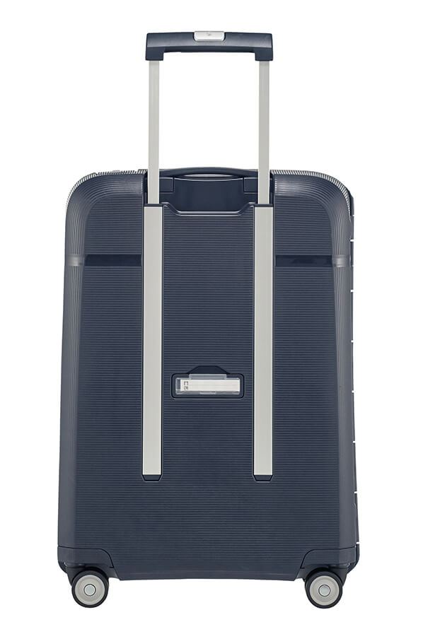 The Magnum Spinner 55cm is a refreshing and unequalled fusion of lightness, outspoken design and the iconic 3-point locking-system. It has the lightest polypropylene frame case in its class. The striking logo, chamfered surfaces and complete integration of each component elevate the outspoken design. It also has top-notch security and is easy to use. Guaranteed by the 3-point locking system. Coupled with a highly featured interior and many innovative technologies, Magnum is the perfect companion for an exciting and fascinating journey. EXTERIOR LOCK - Fixed 3-digit combi lock with TSA to allow safe travel to the US. ZIPPERS - Standard zippers. WHEEL HANDLE - Double tube. WHEELS - 4 Wheels. CABIN LUGGAGE - Yes. ADDRESS TAG - Retractable, integrated ID tag. INTERIOR BOTTOM COMPARTMENT - Yes. TOP COMPARTMENT - Top compartment with ribbons. DIVIDER PAD - In the bottom compartment. RIBBONS -In the top compartment
