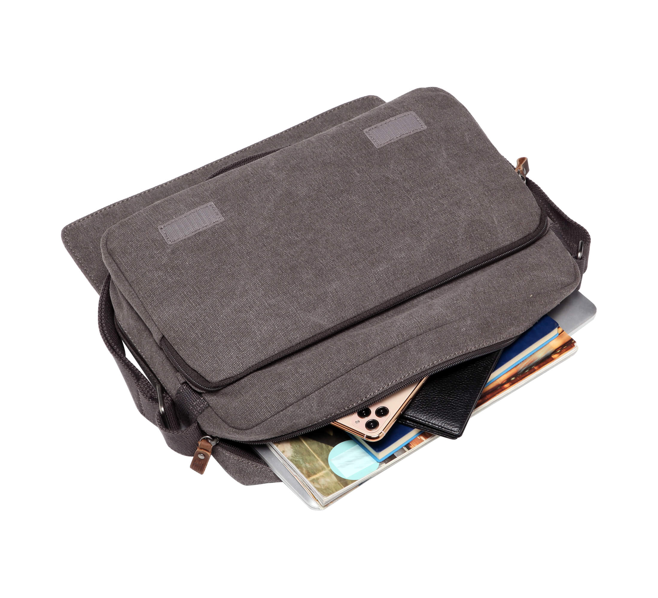 Adjustable canvas shoulder strap with stylish and functional, brass plated buckles. Secure zip pocket at the back. Expanding zip on the bottom of this bag, increases packing capacity, allowing you to take more of things you cannot part with. Spacious zip pocket on the front flap. Two strong fastener tape patches, keep the front flap in place at all times. One internal zip pocket for maximum security, Front flap covers a zip pocket which consists of an organizer compartment. The organizer consists of slots for your pens, credit or business cards and phone pocket. The main compartment fits large books, folders, A4 size files or a change of clothes for a short getaway. A deep and spacious main compartment with a zip on the top ensures your essentials and gadgets travel in safety giving you one less thing to worry about.